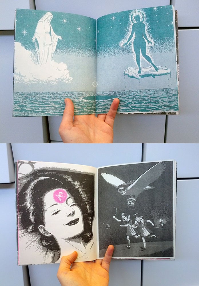 32 pages, Risograph-printed in black, fluorescent pink, burgundy, and teal ink.