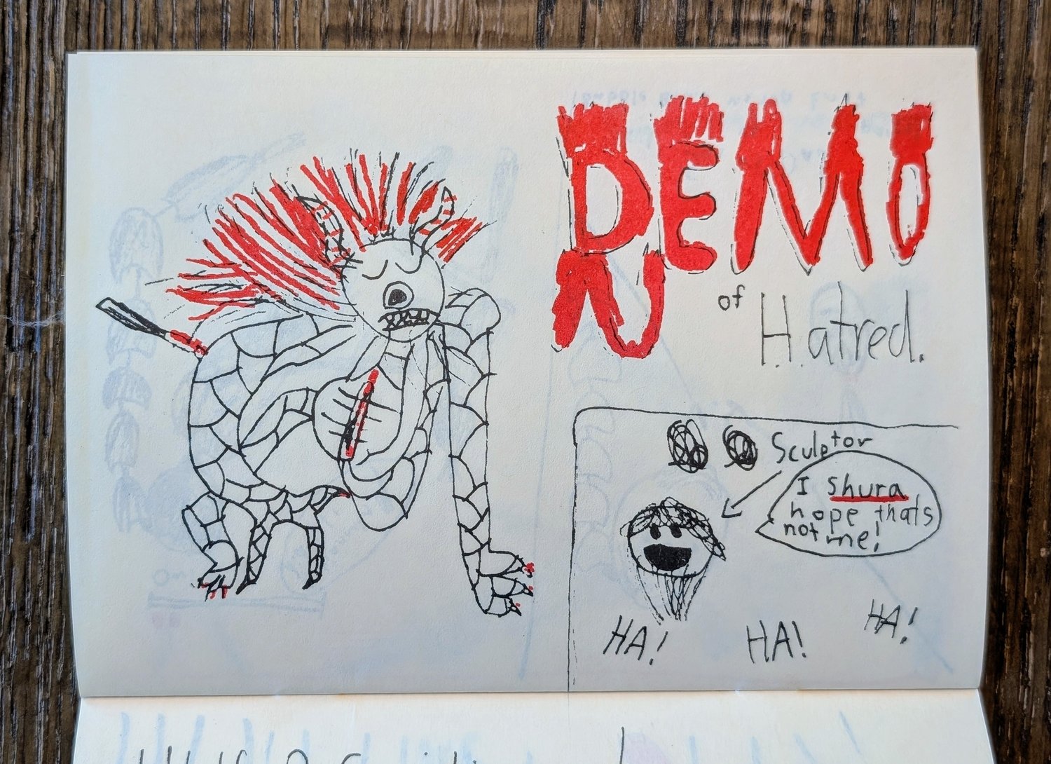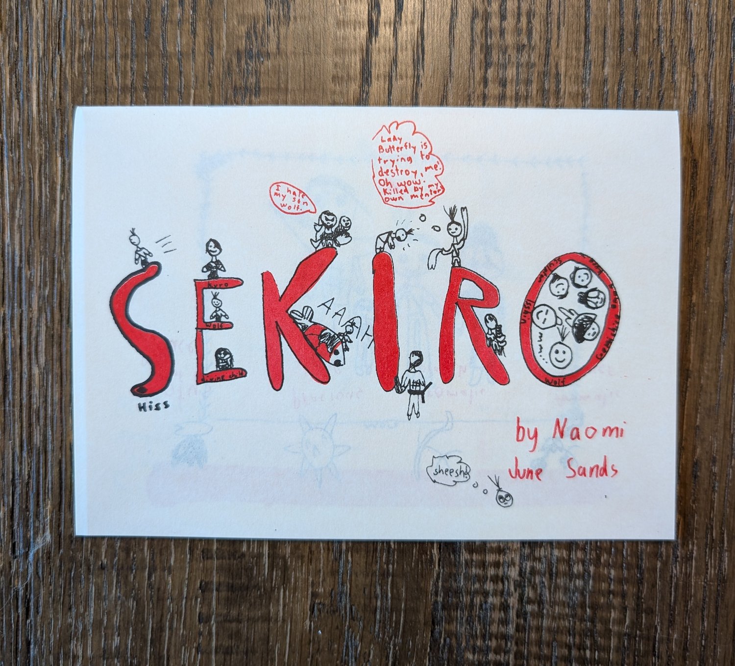 Undertown: Sekiro features 40 pages of fan art, comics, and commentary from Naomi (Age 8). Printed by Naomi and dad on a Risograph RP in black and blood red.
